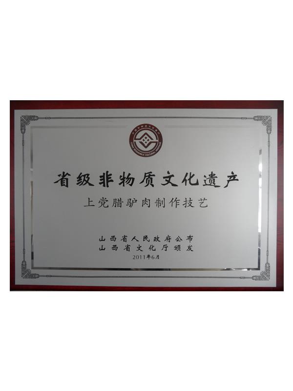 《本草綱目》第五十卷記載有:“驢肉味甘、無毒、解心煩、止風狂、能安心氣、補血益氣、治遠年勞損”的作用,尤其對失眠、健忘、眩暈、營養不良、貧血癥有獨特療效。上黨臘驢肉是山西長治市的漢族傳統名吃,其肉質肥而不膩、瘦而不柴、香味四溢、回味無窮。早在明代,臘驢肉就已馳名于上黨和晉南地區,產品遠銷北京、天津、南京等南北名城。臘驢肉與當地的涼粉、酥火燒被稱為潞安府(長治古稱潞安府)三寶。